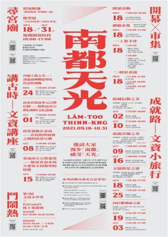2021臺南市文化資產月─南都天光活動詳情請上臺南市文化資產管理處臉書及官網查詢。